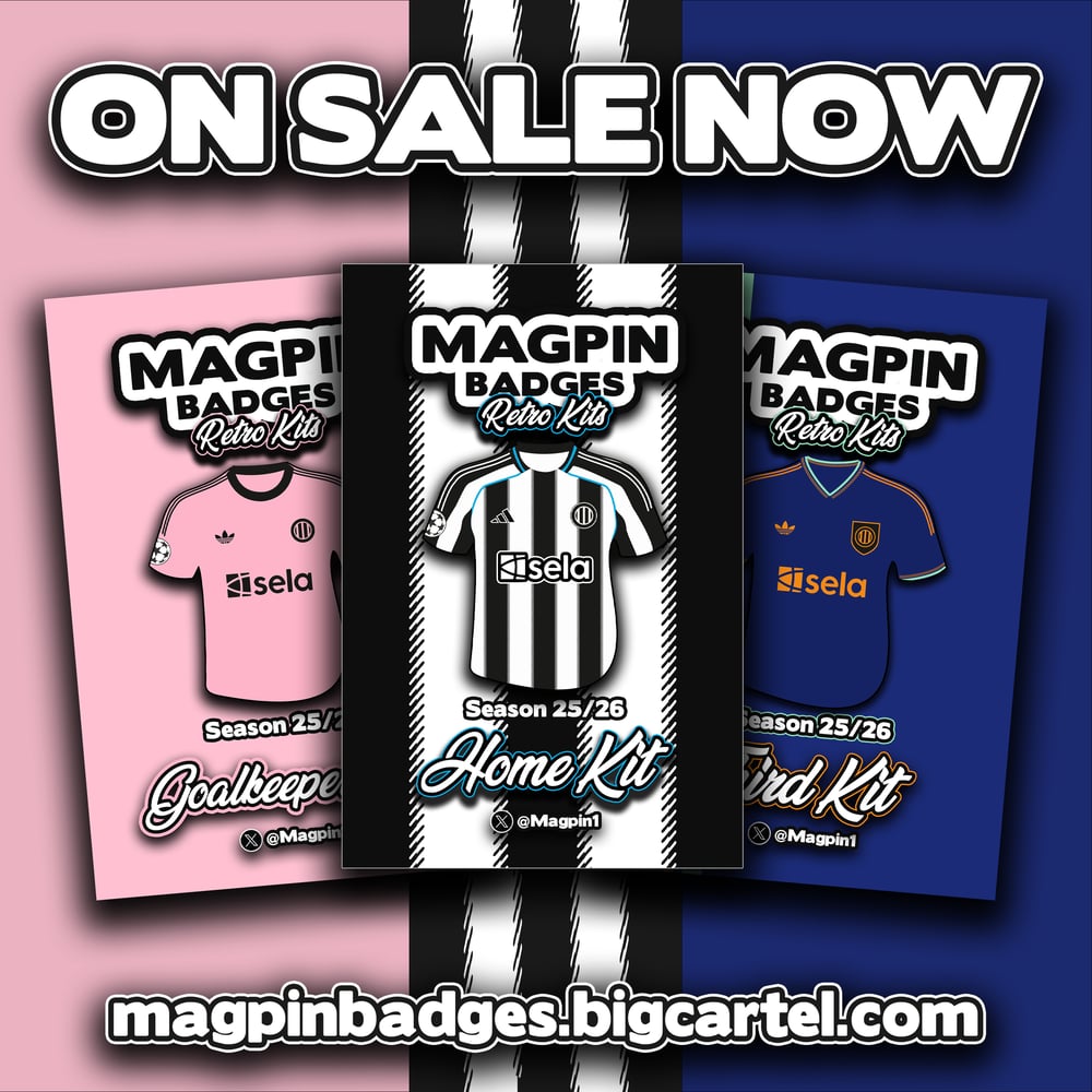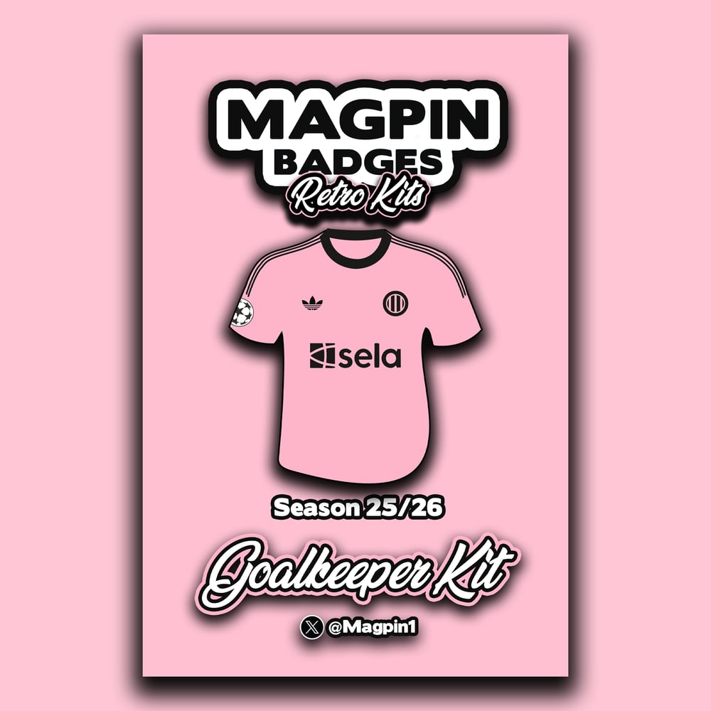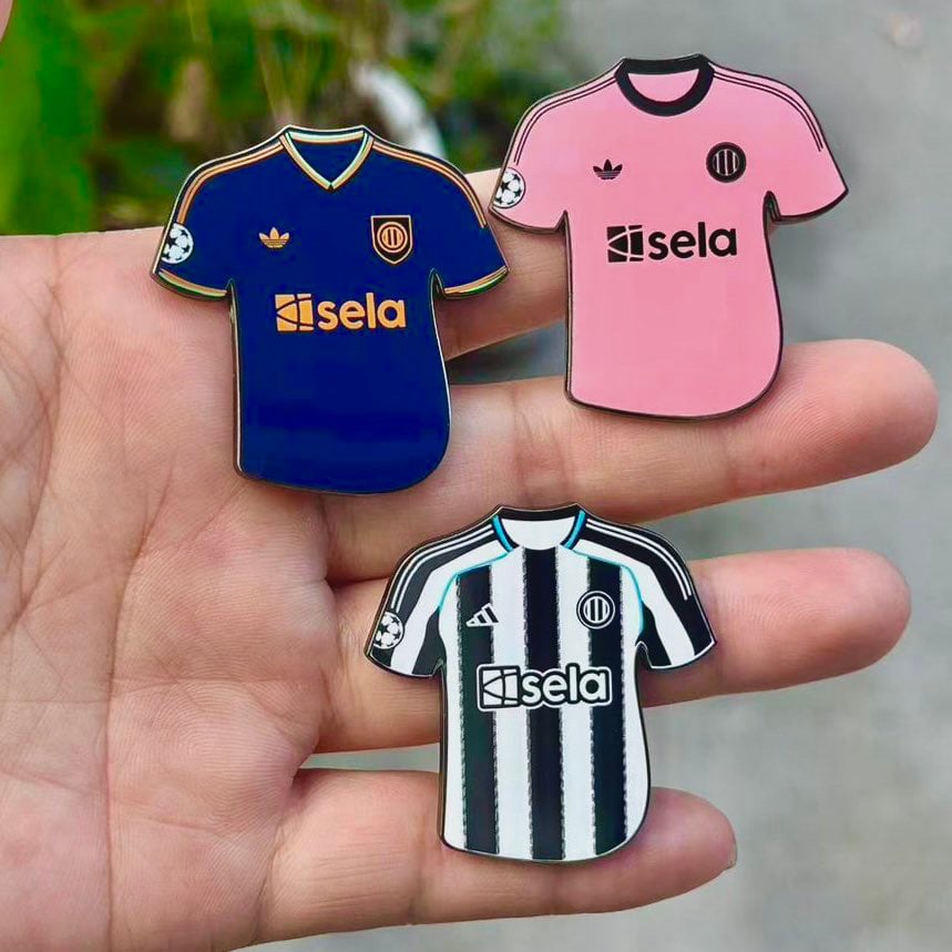 Enamel pin badges of our Home, Third and Goalkeeper kits for the 25-26 season.