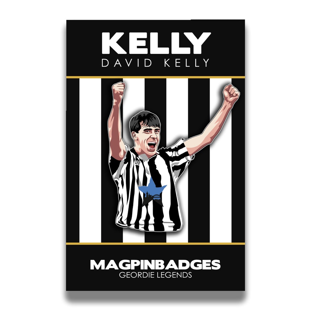 Enamel pin badge of ‘Geordie Legend' David Kelly.